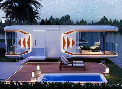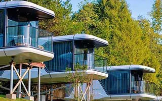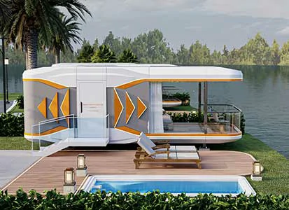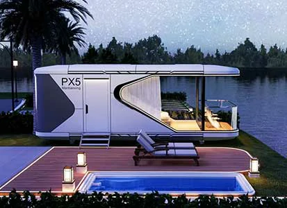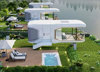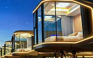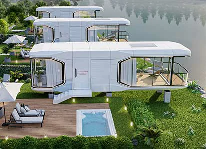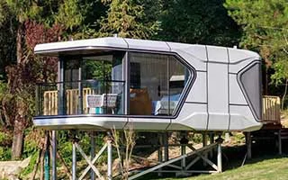 Standardized removable fully prefabricated space capsule Independently developed quality assurances regardless of terrain panoramic view of ecological development return of nature overall prefabricated quick installation.